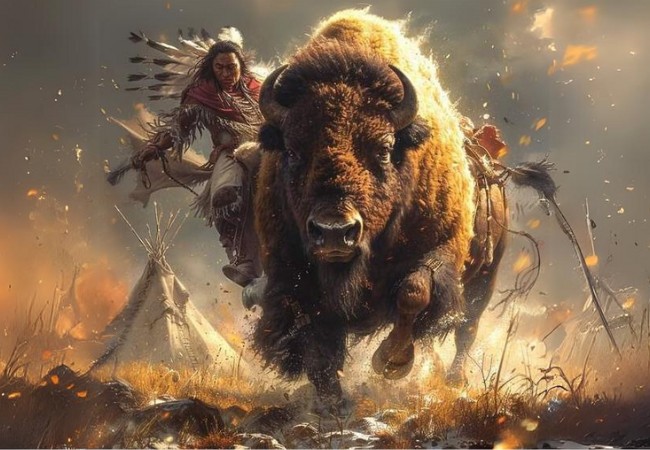 La caza era vital para muchas tribus, especialmente en las Grandes Llanuras, donde los bisontes eran una fuente esencial de alimento y materiales. Estos animales no solo proporcionaban carne, sino también pieles para ropa, huesos para herramientas, y tendones para cuerdas. La caza del bisonte requería una planificación y coordinación minuciosa dentro de la tribu, ya que los bisontes viajaban en grandes manadas y su caza era tanto un acto de supervivencia como un ritual espiritual.